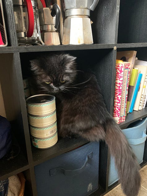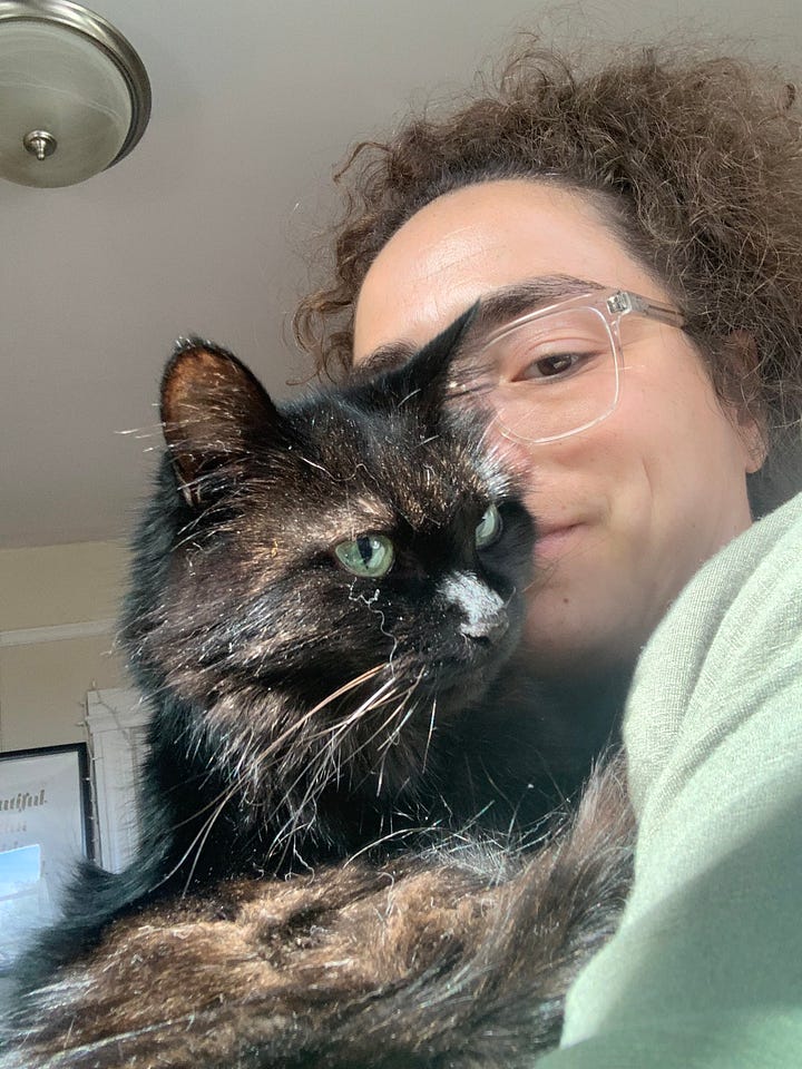 One July, or maybe it was November—her declines occurred in dramatic bursts every 6 months—I confirmed that she had lost nearly 4 pounds due to failing kidneys and hypothyroidism. We started a new medication routine that we maintained until the end. It was at that time I fully acknowledged she wouldn’t be around forever. I had a small serious talk with myself when I adopted her that I most likely would be the one to shepherd her into her afterlife, but since I was at the onset of our companionship, I didn’t dwell. In this moment as her potential demise became more tangible, I accepted that I was now the carer for a geriatric cat (according to the pet insurance provider I had looked at) and I would be responsible for the next step.