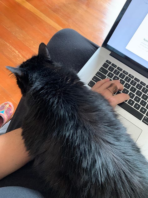 Coco was a very special cat. She was loved by all. She made her presence and her feelings known. She loved salmon treats, cheese, chewing on grass and plastic, monitoring the front door, smelling fresh air, rubbing her wet nose on people’s toes, super warm spots (laps, laptops, radiators, sunspots), stretching her little legs out, and curling up into impossible shapes so she could make the world disappear. She taught me what it means to truly care for and love another creature, even when it feels impossible. She absorbed my deepest, darkest pain and brought me back to myself.